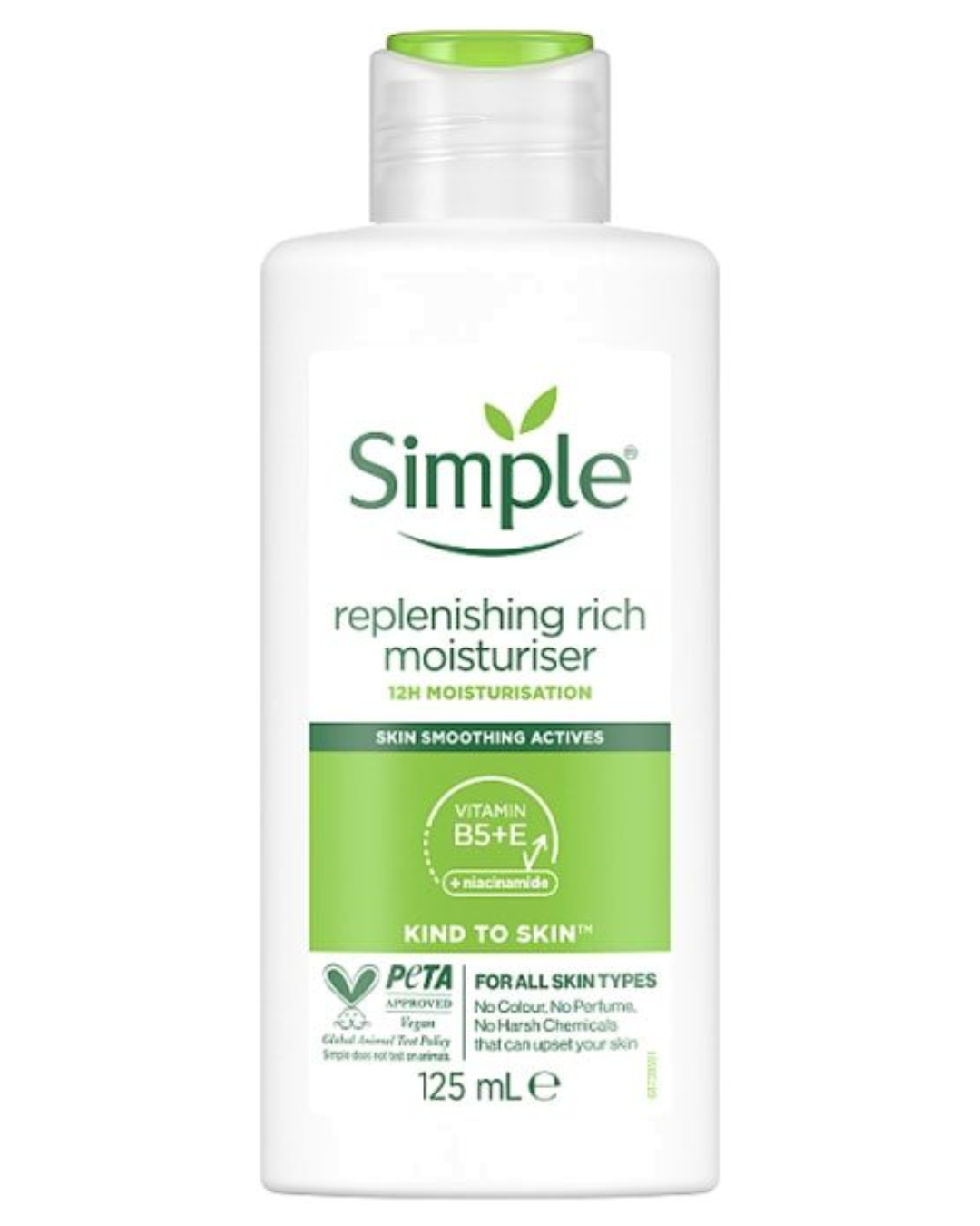 This moisturiser absorbs quickly and easily into the skin, providing immediate hydration and long-lasting comfort. Whether you have dry, sensitive, or normal skin, **Simple Replenishing Rich Moisturiser 125ml** is the perfect addition to your daily skincare routine.