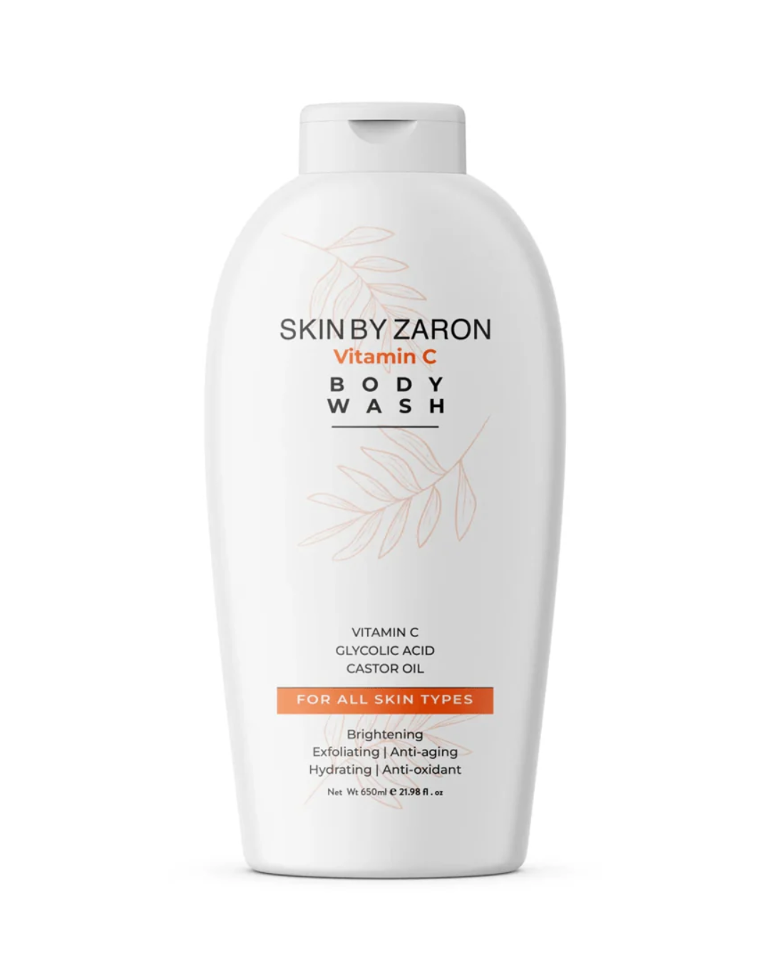 Revitalize your skin with Skin by Zaron Vitamin C Body Wash. This nourishing body wash is enriched with Vitamin C, known for its powerful antioxidant and skin-brightening properties. It gently cleanses, hydrates, and promotes a radiant, healthy glow while removing impurities and excess oil. Suitable for all skin types, Skin by Zaron Vitamin C Body Wash helps to even out skin tone and enhance your skin’s natural glow, leaving it soft, smooth, and refreshed after every use. Ideal for daily use, this body wash will make your shower routine feel rejuvenating and luxurious.