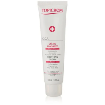 Topicrem CICA Soothing Cream is a protective moisturizer with an intensely calming cocktail of soothing ingredients for irritated and compromised skin barriers all over the body (including as a nappy cream or a gynecological treatment). It combines copper, zinc, and manganese gluconates with hyaluronic acid to promote cell regeneration and skin comfort. Additionally, it features bisabolol, an anti-inflammatory and soothing ingredient, highly effective in wound healing.